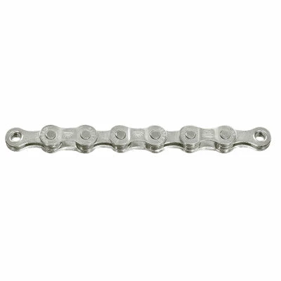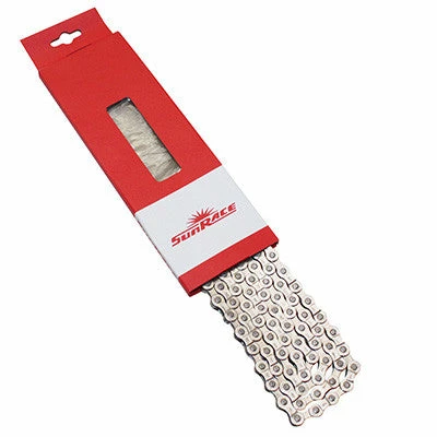 Cette chaîne Sunrace argent est faite en acier chromoly, elle est résistante et solide. Chacun des maillons mesure 1/2 pouce (le pas) par 3/32 (la largeur). Un maillon de type attache rapide pour vélo permettant de fermer facilement la chaine est fourni. Vous pouvez vous en procurez un supplémentaire en Options.