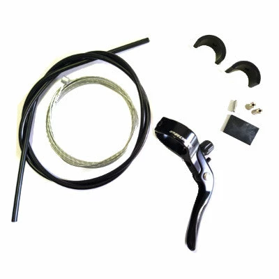 La position relevée du rehausseur de guidon D-bar s’adopte généralement sur un terrain relativement facile et plat, où les freins ne sont pas forcément indispensables. Néanmoins, pour ceux que cela rassure, il est possible de rajouter une poignée de frein sur le D-Bar qui s’adapte au frein de type mécanique comme sur l’image plus haut. La poignée de frein s’adapte au système de freinage par tirage à câble.