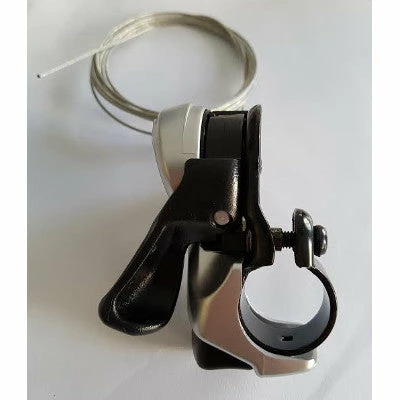 L’installation de cette manette est facile. Elle se réalise en réglant la vie d’une bague de serrage sur le cintre, du côté droit. La bague convient pour un guidon vélo de diamètre de 22.2 mm. Ce dispositif est livré avec un câble de 2050 mm de long. Un kit de gaine de dérailleur long de 2 mètres est disponible en option pour parfaire le montage.