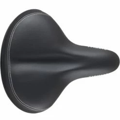 Avec son assise large, la selle de vélo Selle Royale Rio Moderate offre une position de conduite détendue, à 60 °, au cycliste. Polyvalente, elle peut ainsi équiper aussi bien un vélo de ville qu’un vélo de loisirs. Elle assure le confort du cycliste par sa technologie Unitech. C’est-à-dire que sa mousse intérieure est mélangée à un matériau résistant et confortable. Son revêtement extérieur est aussi robuste. Il s’accompagne, de plus, de détails graphiques qui donnent un joli look à cette selle vélo noire.
